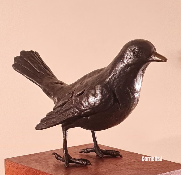 Start 19-7-2021, op de sokkel 22-01-2023. Inspiratie Op een mooie zomerdag kwam een prachtige spreeuw op een boog in de tuin zitten. Hij dacht dat de wereld van hem was, en dat liet hij ook merken. Hij schreeuwde (krijste) het…